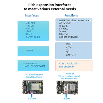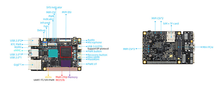 ఆన్బోర్డ్ గిగాబిట్ ఈథర్నెట్ పోర్ట్, RGMII, USB3.0/2.0, మినీ పిసిఎల్ఇ, మినీ హెచ్డిఎంఐ, మిపిఐ స్క్రీన్ మరియు మిపిఐ కెమెరా మరియు ఇతర పరిధీయ ఇంటర్ఫేస్లు, 40 పిన్ ఉపయోగించని పిన్లను, మరింత అభివృద్ధి అవసరాలను తీర్చడానికి గొప్ప విస్తరణ ఇంటర్ఫేస్లు!