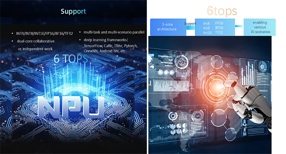 4. ఎడ్జ్ AI: ఇంటిగ్రేటెడ్ 6 టాప్స్ ఎన్పియు డెవలపర్లను ముఖ గుర్తింపు వ్యవస్థలు మరియు స్మార్ట్ సెన్సార్లు వంటి తక్కువ-జాప్యం AI అనువర్తనాలను నిర్మించటానికి వీలు కల్పిస్తుంది.