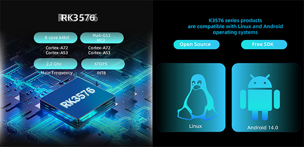 . ఇది ఇమేజ్ రికగ్నిషన్ మరియు సెన్సార్ డేటా విశ్లేషణ వంటి ఎడ్జ్ AI పనులకు RK3576 అనువైనదిగా చేస్తుంది.